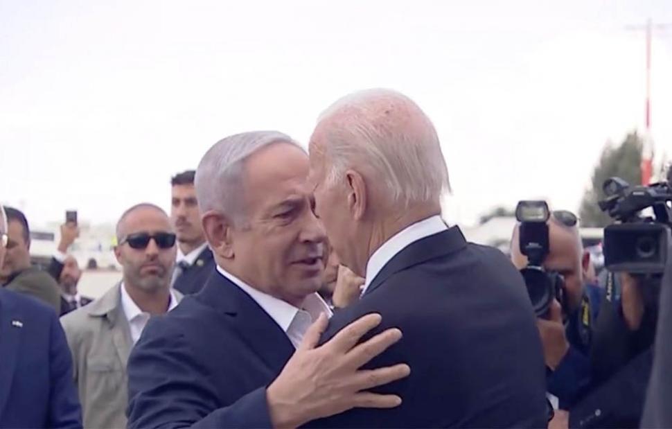 Τόσο ο Ισραηλινός πρωθυπουργός Μπέντζαμιν Νετανιάχου όσο και ο Πρόεδρος του Ισραήλ Ισαάκ Χέρτζογκ βρέθηκαν στο αεροδρόμιο Μπεν Γκουριόν για να υποδεχθούν τον Μπάιντεν, πριν συναντηθούν μαζί του στο Τελ Αβίβ.