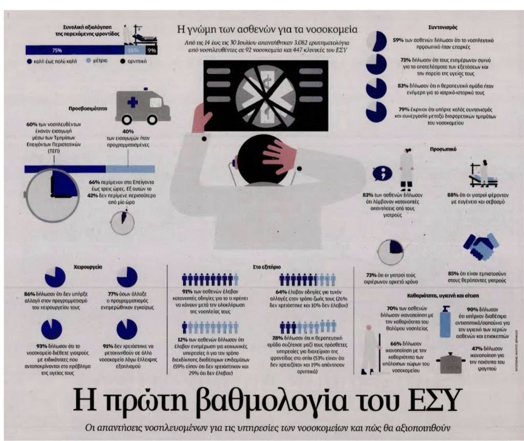 Την Κυριακή δημοσιεύθηκε στην «Καθημερινή» ένα άρθρο με τα πρώτα αποτελέσματα από την εφαρμογή της αξιολόγησης των υπηρεσιών του ΕΣΥ από τους ίδιους τους ασθενείς του.