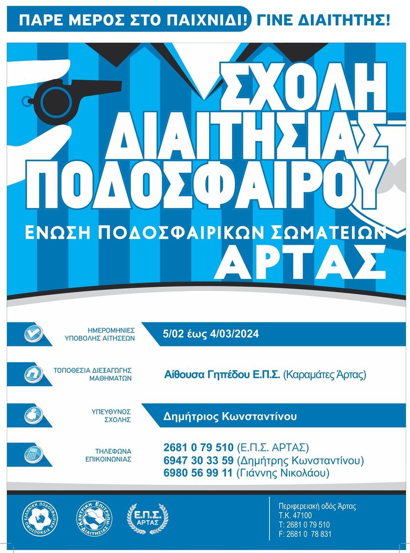 ΑΡΤΑ- Σχολή διαιτησίας ποδοσφαίρου
