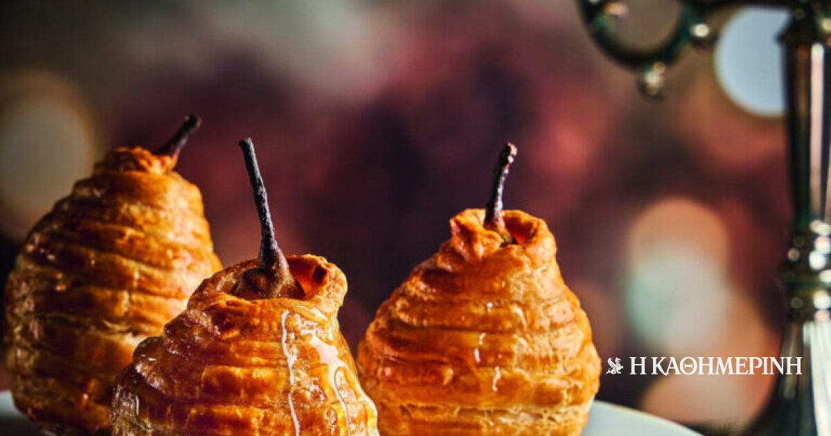 Αχλάδια ποσέ με μέλι τυλιγμένα σε σφολιάτα, ένα φίνο, εντυπωσιακό και διαφορετικό επιδόρπιο που θα ξεχωρίσει.