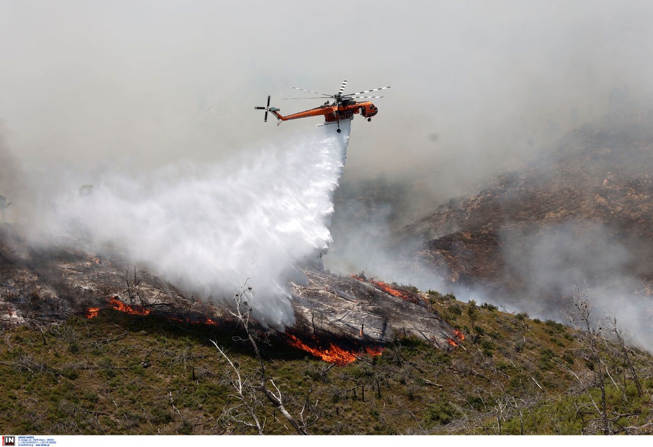 Στο έργο της κατάσβεσης της πυρκαγιάς συμμετέχουν 44 πυροσβέστες, με τρεις ομάδες πεζοπόρων από 5η και 6η Ε.ΜΟ.Δ.Ε., 10 οχήματα, ενώ από αέρος πραγματοποιούν ρίψεις νερού έξι αεροσκάφη και ένα ελικόπτερο. Συνδρομή από υδροφόρες Ο.Τ.Α. και μηχανήματα έργου.