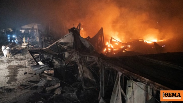 Στο βομβαρδισμένο συγκρότημα, τραυματιοφορείς ανέσυραν πτώματα, ενώ τμήματα της εγκατάστασης συνέχιζαν να καίγονται.
