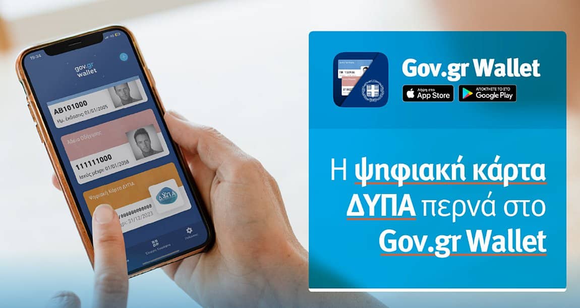 Διαθέσιμη μέσω του Gov.gr Wallet είναι από χθες, Δευτέρα 9 Ιανουαρίου 2023, η νέα Ψηφιακή Κάρτα ΔΥΠΑ. Με τον τρόπο αυτό, οι πολίτες που αναζητούν εργασία και είναι εγγεγραμμένοι στο Ψηφιακό Μητρώο της ΔΥΠΑ (πρώην ΟΑΕΔ) έχουν τη δυνατότητα να αποθηκεύουν σε κινητά τηλέφωνα, tablet και άλλες κινητές συσκευές την νέα ψηφιακή κάρτα και να τη χρησιμοποιούν για εύκολη και άμεση πρόσβαση στις παροχές που δικαιούνται.