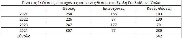 Το 2024 το Υπουργείο Παιδείας αύξησε τον αριθμό των εισακτέων στην προσπάθειά του να μειώσει τις κενές θέσεις και όπως βλέπουμε τις… υπερτριπλασίασε (από 70 σε 230). Πράγματι δεν καταλαβαίνουν τι θα συμβεί όταν αποφασίζουν την αύξηση του αριθμού των εισακτέων ή μας κοροϊδεύουν;