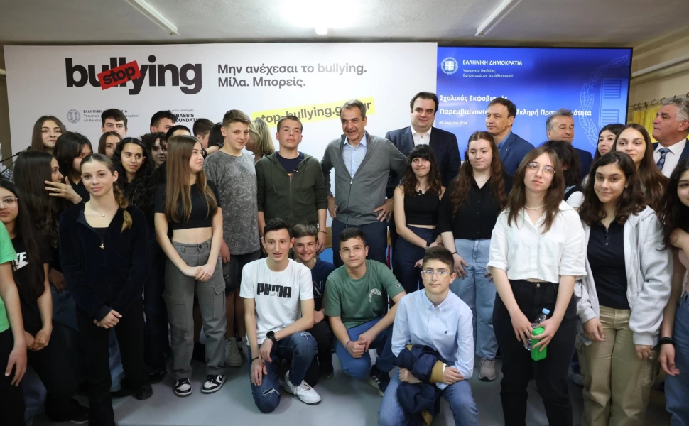 Ο πρωθυπουργός συνοδεύεται από την πολιτική ηγεσία του υπουργείου Παιδείας, Θρησκευμάτων και Αθλητισμού για την εθνική καμπάνια που αφορά την αντιμετώπιση της ενδοσχολικής βίας, την οποία παρουσιάζει μαζί με τον Κυριάκο Πιερρακάκη.