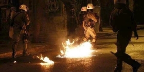 Συγκεκριμένα, κατά το χρονικό διάστημα από 20:00-21:00 εκδηλώθηκαν τέσσερις (4) επιθέσεις σε βάρος αστυνομικών δυνάμεων από άτομα με καλυμμένα τα χαρακτηριστικά του προσώπου τους συνοδευόμενες από ρίψη βομβών μολότοφ, πετρών, γυάλινων μπουκαλιών, μαρμάρων, λοιπών αντικειμένων και χρήση σωματικής βίας.