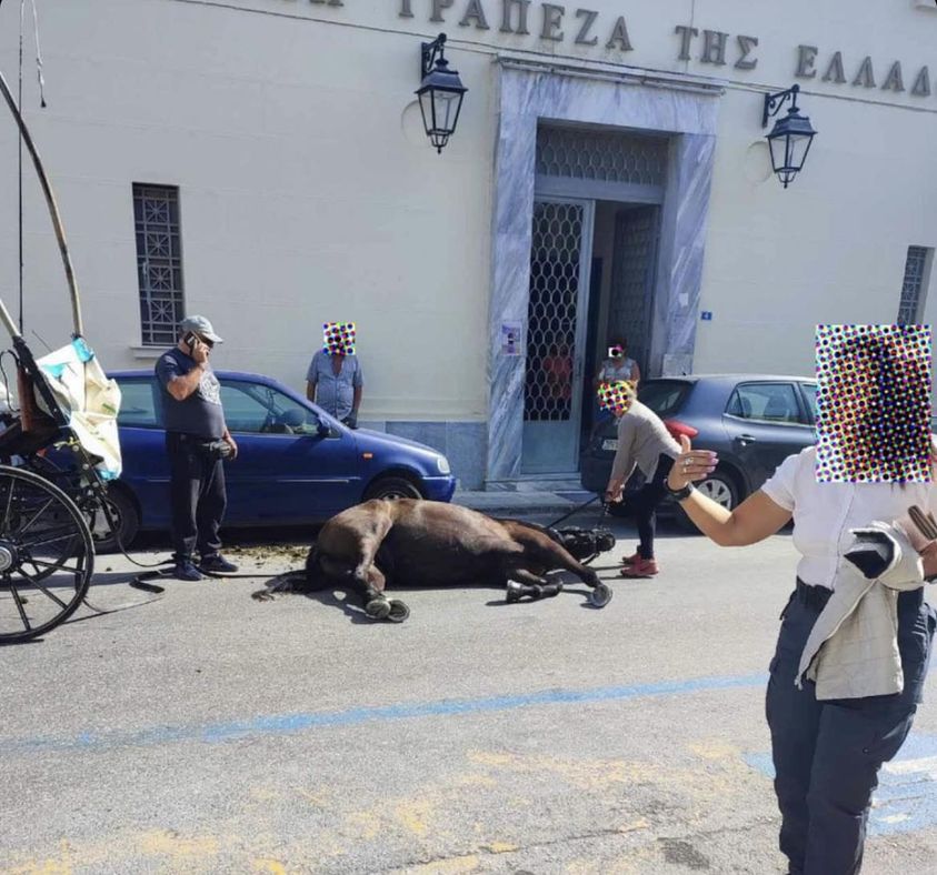 Ζάκυνθος – Άλλο ένα άλογο σωριάστηκε στο έδαφος, έξω από την εθνική τράπεζα..