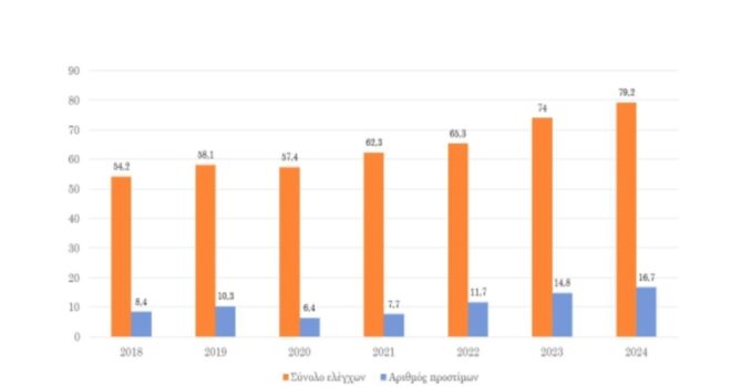 Στον παρακάτω πίνακα αποτυπώνονται τα συγκριτικά στοιχεία ελέγχων από την Επιθεώρηση Εργασίας με αριθμούς: