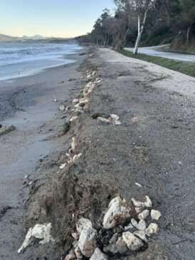 Η παράταξη ” Κοινό των Ηπειρωτών ” αναφέρει ότι μετά τις πρόσφατες κακοκαιρίες παρατηρήθηκαν ζημιές στην παραλία του Μονολιθίου καθώς μεγάλο τμήμα του επιφανειακού αλλά και του υποστρώματος του ποδηλατοδρόμου παρασύρθηκε από το χειμερινό κύμα.