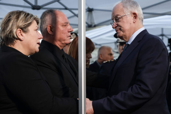 Στην τελετή παρέστησαν ο Πρόεδρος της Δημοκρατίας Κωνσταντίνος Τασούλας, ο Πρόεδρος της Βουλής Νικήτας Κακλαμάνης, ο γενικός γραμματέας Δημόσιας Τάξης του Υπουργείου Προστασίας του Πολίτη Παναγιώτης Στάθης, υπουργοί, βουλευτές και εκπρόσωποι κομμάτων, η ηγεσία των Ενόπλων Δυνάμεων και της Ελληνικής Αστυνομίας, ο δήμαρχος Θεσσαλονίκης Στέλιος Αγγελούδης, η οικογένεια του αδικοχαμένου αστυνομικού και συνάδελφοί του.