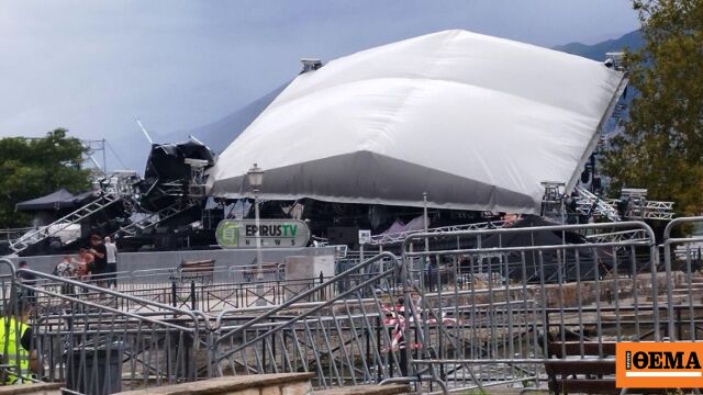 Παρά το γεγονός ότι η ΕΜΥ είχε προειδοποιήσει για αλλαγή του καιρού, η σκηνή για τη συναυλία είχε στηθεί από χθες και σήμερα κατέρρευσε με αποτέλεσμα τις σοβαρές υλικές ζημιές που προκλήθηκαν στον εξοπλισμό.