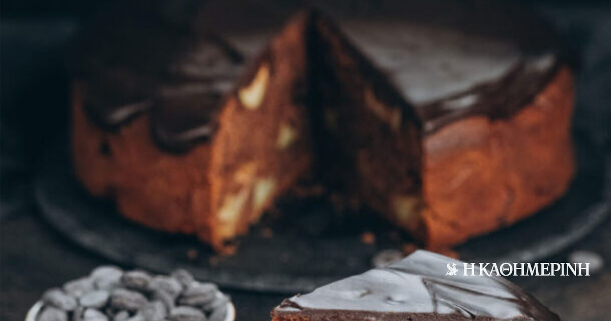 Κέικ με κακάο, μήλα και κομμάτια σοκολάτας