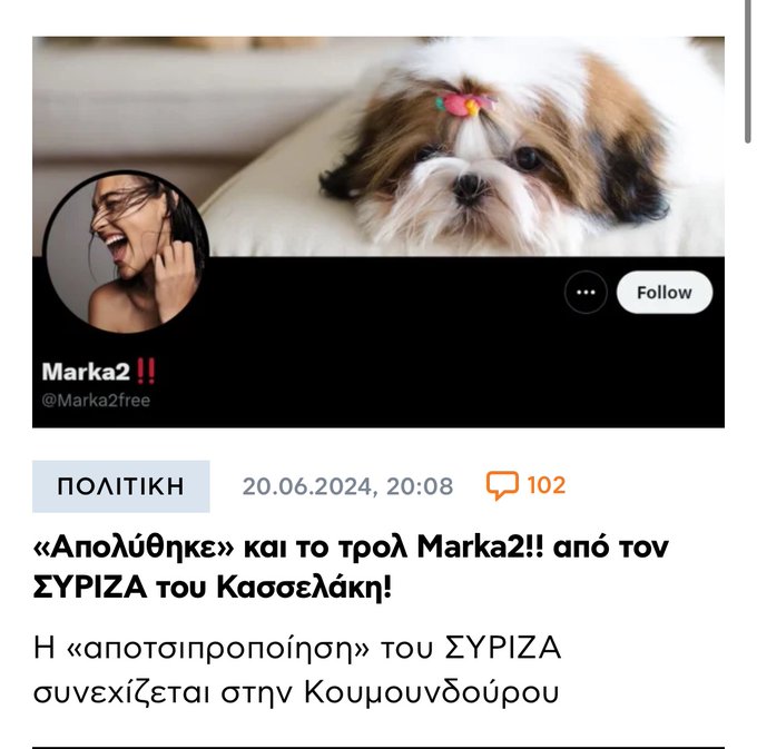 Το τρολ αυτό μέχρι τις βουλευτικές του 2023 αποθέωνε την Αχτσιόγλου. Μετά την έβριζε και αποθέωνε τον Στέφανο. Μετά άδειασε τον Στέφανο και πέρασε στον Τσίπρα.