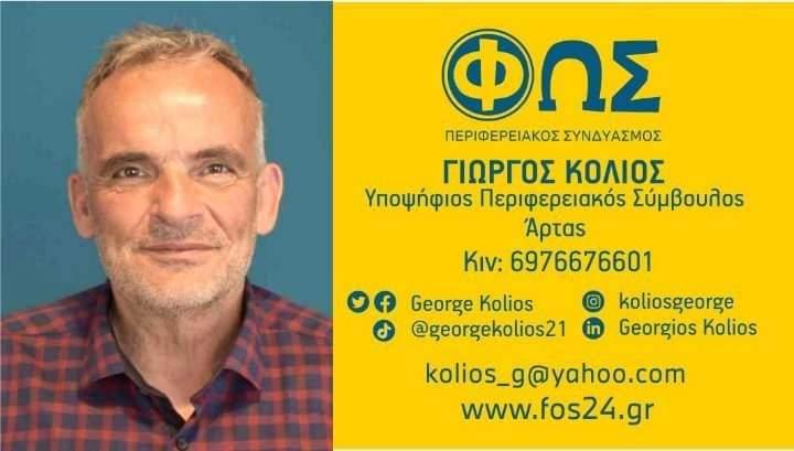 ΚΟΛΙΟΣ ΓΕΩΡΓΙΟΣ ΥΠΟΨΗΦΙΟΣ ΠΕΕΙΦΕΡΕΙΑΚΟΣ ΣΥΜΒΟΥΛΟΣ ΠΕ ΑΡΤΑΣ ΤΟΜΕΡΧΗΣ ΠΟΛΙΤΙΚΗΣ ΠΡΟΣΤΑΣΙΑΣ ΦΩΣ