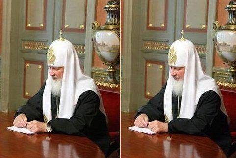 Ο Πατριάρχης του Πούτιν Κύριλλος φοράει ρολόι, μάρκας Breguet, αξίας 25 χιλ. δολαρίων (φωτό 1) αλλά το εξαφάνισαν (φωτό 2) για να μην σκανδαλιστεί το πτωχό ποίμνιο. Ξέχασαν όμως τον καθρεφτισμό του στο τζάμι του γραφείου.