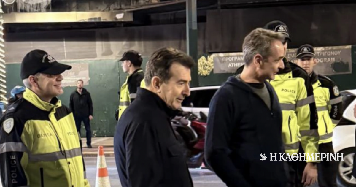 Ο κ. Μητσοτάκης έφτασε περπατώντας στο σημείο και συνομίλησε με τους αστυνομικούς της Τροχαίας που σταματούσαν τα οχήματα για να ελέγξουν τους οδηγούς.