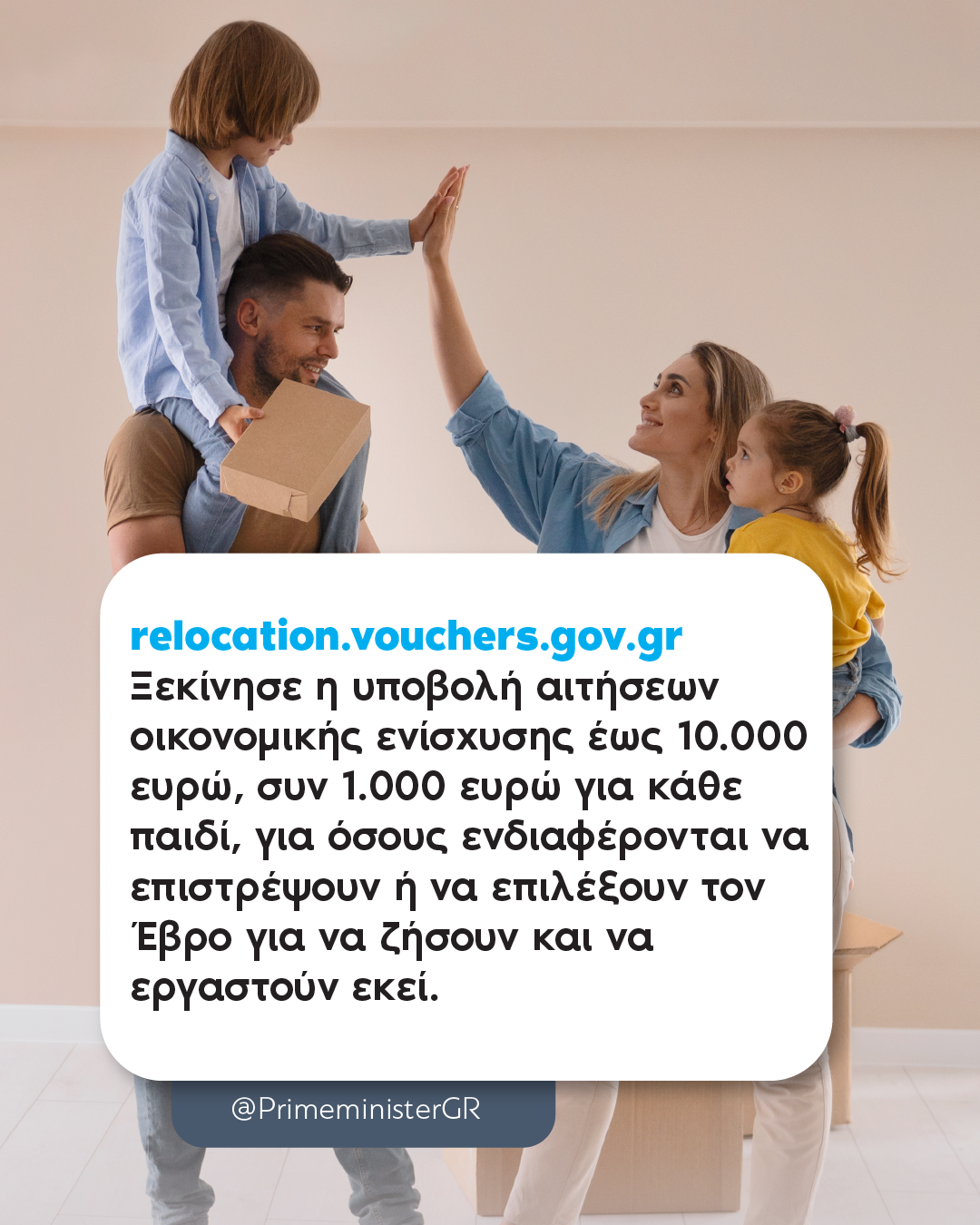 Το λέω όπως το νιώθω: για να είμαστε όλοι οι υπόλοιποι ασφαλείς, πρέπει πρώτα και κύρια να αισθάνονται ασφαλείς και να νιώθουν αισιόδοξοι οι Εβρίτες μας. Γι’ αυτό και με απασχολεί συνεχώς το ζήτημα της δημογραφικής συρρίκνωσης, ειδικά του βορείου Έβρου. Άνοιξε, λοιπόν, στο relocation.vouchers.gov.gr το σύστημα υποβολής αιτήσεων οικονομικής ενίσχυσης έως 10.000 ευρώ, συν 1.000 ευρώ για κάθε παιδί, για όσους πολίτες ενδιαφέρονται να επιστρέψουν ή να επιλέξουν τον Έβρο για να ζήσουν, να εργαστούν και να δημιουργήσουν εκεί. Προφανώς, δεν αρκεί ένα επίδομα για να αναστρέψουμε τη δημογραφική συρρίκνωση της περιοχής, γι’ αυτό και το σχέδιό μας πλαισιώνεται από παρεμβάσεις όπως η ενδυνάμωση του Δημοκρίτειου Πανεπιστημίου με νέα τμήματα στην περιοχή, η πύκνωση του σιδηροδρομικού μας δικτύου, αλλά και ενισχυμένα κίνητρα για τους δημοσίους υπαλλήλους. Επιπλέον, λειτουργούν Κινητές Ομάδες Υγείας για τις απομακρυσμένες κοινότητες, ενώ η επέκταση του φράκτη συνεχίζεται ως αποτελεσματικό ανάχωμα στις παράνομες μεταναστευτικές ροές. Παράλληλα, προωθούμε νέες δράσεις απασχόλησης και επιχειρηματικότητας, ειδικά προγράμματα κινήτρων για νέες επενδύσεις, αλλά και τη μείωση του μεταφορικού κόστους των επιχειρήσεων του Έβρου. Στο πλαίσιο αυτό, το επόμενο διάστημα θα ανακοινώσουμε επιδότηση για έως και τρία χρόνια σε κυκλική εβδομαδιαία ακτοπλοϊκή σύνδεση με τον Πειραιά, που θα περιλαμβάνει ενδιάμεσες στάσεις σε Χίο και Μυτιλήνη. Θέλουμε μια Ελλάδα με όλους, για όλους. Αυτή είναι η Εθνική Στρατηγική μας για την Περιφερειακή και Τοπική Ανάπτυξη. Αυτό είναι το όραμά μας και δεν μπορεί να απουσιάζει από αυτό η διαρκής μέριμνα για τους ακρίτες του Έβρου μας.