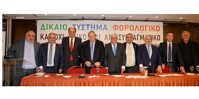 Σε μία κατάμεστη αίθουσα κεντρικού ξενοδοχείου της Αθήνας, παρουσία αρχηγών κομμάτων, βουλευτών και πολιτικών στελεχών, εκατοντάδες ελεύθεροι επαγγελματίες και αυτοαπασχολούμενοι άκουσαν τις τοποθετήσεις των Προκόπη Παυλόπουλου, τέως Πρόεδρου Ελληνικής Δημοκρατίας, Ακαδημαϊκού, Επίτιμου Καθηγητή ΕΚΠΑ, Ευάγγελου Βενιζέλου, πρώην Αντιπρόεδρου της Κυβέρνησης, Καθηγητή Συνταγματικού Δικαίου ΑΠΘ και Θεόδωρου Φορτσάκη, Ομ. Καθηγητή Νομικής Σχολής Αθηνών, πρ. Πρύτανη ΕΚΠΑ, πρ. Βουλευτή Επικρατείας, οι οποίοι ανέδειξαν ζητήματα συνταγματικότητας του νέου φορολογικού νόμου.