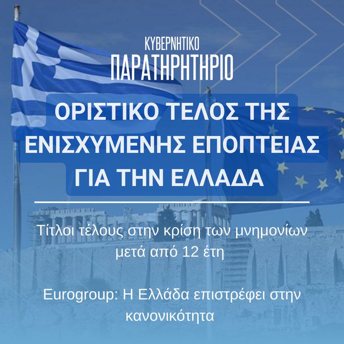 Οριστικό τέλος για την ενισχυμένη εποπτεία στην Ελλάδα.