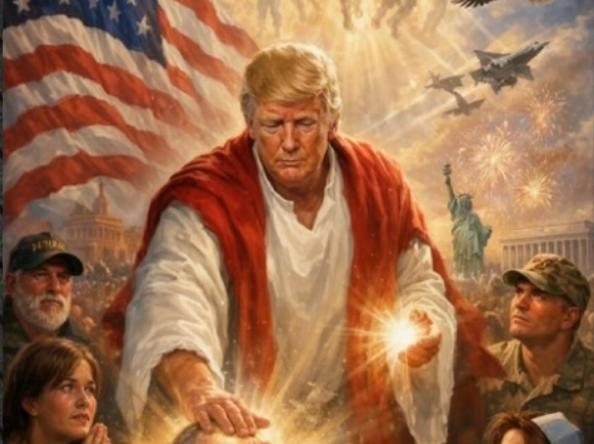 Ο ρεπουμπλικάνος σχεδόν ταυτόχρονα ανέβασε εικόνα δημιουργημένη από κάποιο εργαλείο τεχνητής νοημοσύνης στην οποία παρουσιάζεται, με λευκή και κόκκινη τήβεννο, να βάζει το χέρι στο μέτωπο αρρώστου, κλινήρη στο νοσοκομείο, πλαισιωμένος από ανθρώπους που προσεύχονται ή κάτι προσμένουν, και στο φόντο αμερικανική σημαία, το Άγαλμα της Ελευθερίας, καταδιωκτικά, αετούς και άλλες μορφές.