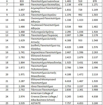 Δημοσιεύουμε αυτή την αξιολόγηση διότι είναι η μόνη που περιλαμβάνει όλα τα εκπαιδευτικά ιδρύματα που λειτουργούν στην Ελλάδα.