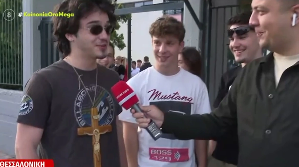 Τον μαθητή εντόπισε έξω από το 1ο Λύκειο Πυλαίας το MEGA με τον Παναγιώτη, όπως είναι το όνομά του, να εξηγεί ότι «διάβαζα όλη τη χρονιά. Δεν μπορείς να βασιστείς ούτε στο ένα ούτε στο άλλο, χρειάζεται και η βοήθεια του Θεού». Όταν, δε, ρωτήθηκε γιατί επέλεξε έναν τόσο μεγάλο σταυρό, ο νεαρός απάντησε ότι «το μέγεθος μετράει προφανώς».