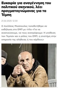 “Ενδεχομένως τα Τέμπη, να είναι η ευκαιρία να πρωταγωνιστήσει το ΕΜΠ σε μια νέα αντιπολίτευση, συγγνώμη αναγέννηση του πολιτικού σκηνικού”.