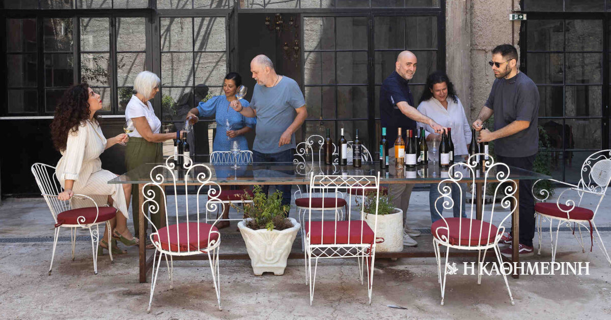 Οι άνθρωποι του κρασιού που μας βοήθησαν να καταρτίσουμε μια ωραία λίστα με πάνω από 100 ελληνικές ετικέτες: (από αριστερά) Νένα Δημητρίου, Μερόπη Παπαδοπούλου, Νικολέτα Μακρυωνίτου, Γιάννης Καϋμενάκης, Ελευθέριος Χανιαλίδης MS, Μαριάννα Μακρύγιαννη, Άρης Σκλαβενίτης. Φωτογραφία: Άσπα Κουλύρα
