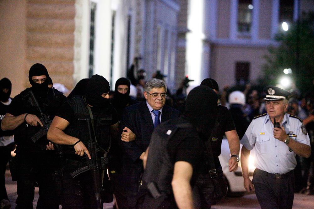 Συλλαμβάνονται τα ηγετικά στελέχη της «Χρυσής Αυγής» (Μιχαλολιάκος, Κασιδιάρης, Λαγός κ.ά.). Κατηγορούνται για σύσταση εγκληματικής οργάνωσης και οπλοκατοχή.