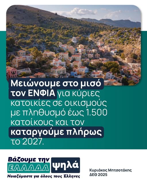 Τα χωριά του νομού Πρέβεζας όπου μειώνεται το 2026 κατά 50 % ο ΕΝΦΙΑ και καταργείτε οριστικά το 2027.