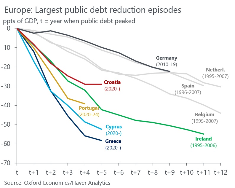 Σε «τροχιά» αποκλιμάκωσης βρίσκεται ο δείκτης του ελληνικού χρέους ως αναλογία του ΑΕΠ, με τη χώρα μας να καταγράφει τη μεγαλύτερη ετήσια μείωση στην Ευρωπαϊκή Ένωση, σύμφωνα με τον ανεξάρτητο πάροχο μακροοικονομικών δεδομένων, Haver Analytics.
