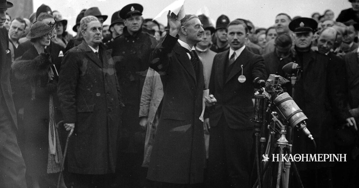 Την ίδια ημέρα, ο Τσάμπερλεν επέστρεψε στο Λονδίνο. Μόλις προσγειώθηκε, έκανε δηλώσεις, κραδαίνοντας το κείμενο της συμφωνίας του Μονάχου που έφερε την υπογραφή του Χίτλερ. «Η διευθέτηση του τσεχοσλοβακικού προβλήματος, η οποία έχει πλέον επιτευχθεί, αποτελεί, κατά τη γνώμη μου, μόνο την απαρχή ενός ευρύτερου διακανονισμού που θα διασφαλίσει την ειρήνη στην Ευρώπη» είπε, χωρίς να κρύψει την ικανοποίησή του. Στην πραγματικότητα, συνέβαινε ακριβώς το αντίθετο.