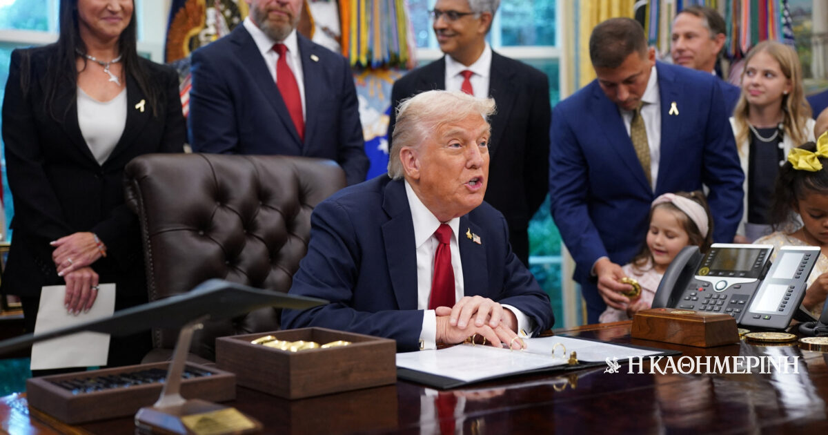 «Υπέγραψαμε σήμερα μια συμφωνία με το Χάρβαρντ, θα δούμε πώς θα πάει – το μόνο που χρειάζεται είναι να μπει σωστά στο χαρτί, Λίντα», είπε ο Τραμπ απευθυνόμενος στην υπουργό Παιδείας Λίντα ΜακΜάχον κατά την τελετή υπογραφής εκτελεστικών διαταγμάτων στο Οβάλ Γραφείο.
