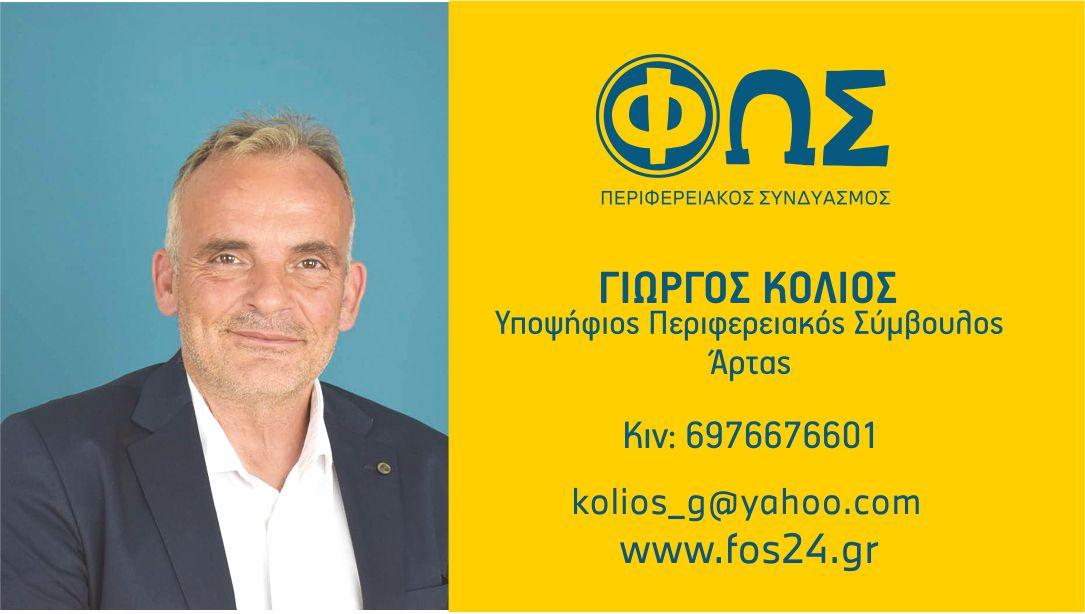 Υιος του Νικολάου Γεωργίου Κολιού απο το Περδικάρι Ροδαυγής Άρτας και της Σοφίας Κωνσταντίνου Χριστογιάννη απο το Σουμέσι Ροδαυγής Άρτας.