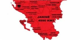 Ο χάρτης εμφανίζει την Κέρκυρα (Korfuz – 641 km²), την Ηγουμενίτσα (Gumenicë – 615 km²), την Πρέβεζα (Preveze – 1036 km²), την Άρτα (Artë – 1602 km²), τα Ιωάννινα (Janinë – 4990 km²) και τα Γρεβενά (Grevenë – 1536 km²), εντός της λεγόμενης «Εθνικής Αλβανίας».