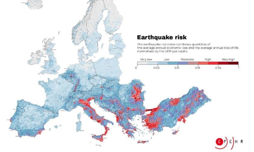 Οι χώρες Τουρκία, Ιταλία, Ρουμανία και Ελλάδα ευθύνονται για περίπου το80% των συνολικών οικονομικών ζημιών από σεισμούς στην Ευρώπη, με το ετήσιο κόστος να αγγίζει τα 7 δισεκατομμύρια ευρώ.