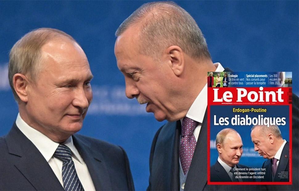 Σαν ένα «διαβολικό ντουέτο» με κοινά συμφέροντα, και πολλά κοινά σημεία, παρουσιάζει σε πρωτοσέλιδό του το γαλλικό περιοδικό Le Point τον πρόεδρο της Ρωσίας Βλαντίμιρ Πούτιν και τον Τούρκο ομόλογό του Ταγίπ Ερντογάν, απηχώντας το κλίμα που επικρατεί σε πολλές δυτικές πρωτεύουσες και για τους δυο τους.