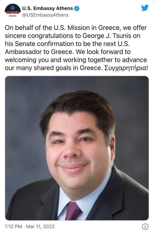 Λέμε συχνά για τις παθογένειες της δικής μας πολιτικής ζωής αλλά τί να πουν κι οι Αμερικανοί. Που κατα μία εξαιρετικά αμφιλεγόμενη πρακτική, διορίζουν ως πρεσβευτές, φίλους των Προέδρων, επιχειρηματίες και χορηγούς των κομμάτων τους. Οπως ο νέος πρεσβευτής στην Αθήνα, 53χρονος ελληνοαμερικανός Τζώρτζ Τσούνης που με μηδενική διπλωματική εμπειρία έρχεται τώρα στην Ελλάδα σε μιά εξαιρετικά κρίσιμη συγκυρία και με τα ελληνοτουρκικά, πάντα ανοιχτά. Ο Τσούνης που δραστηριοποιείται στις ξενοδοχειακές επιχειρήσεις, υπήρξε και είναι φίλος των Ομπάμα-Μπάιντεν, δώρισε στο Δημοκρατικό κόμμα 1,2 εκατομμύρια δολάρια το 2012 και ανταμείφθηκε λίγο…