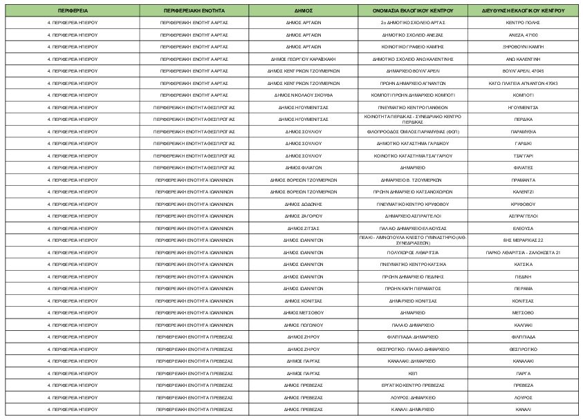 Εκλογικά Κέντρα του ΠΑΣΟΚ στην ΗΠΕΙΡΟ