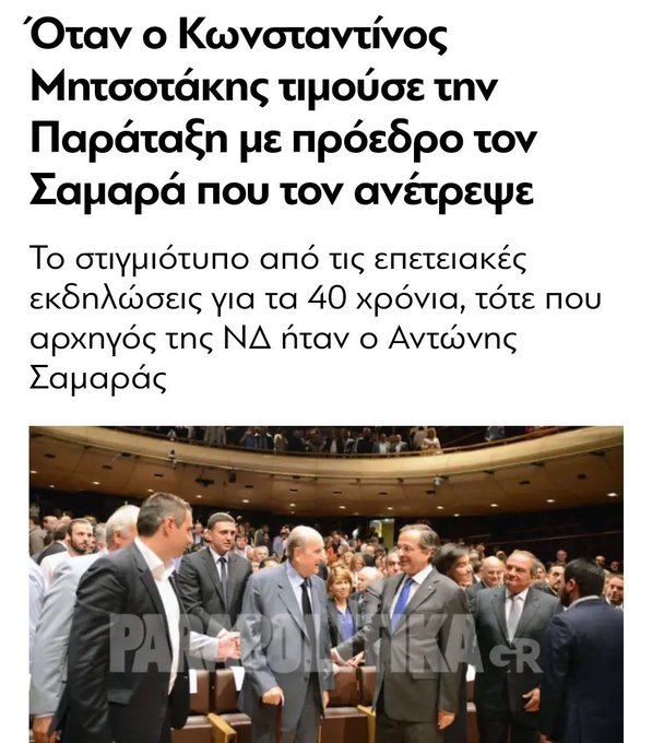 Η Νέα Δημοκρατία ήταν πάντα μεγαλύτερη από τα πρόσωπα και τις φιλοδοξίες τους. Τους τίμησε η Παράταξη. Τους έκανε αρχηγούς της. Έγιναν πρωθυπουργοί από την ψήφο των ανώνυμων νεοδημοκρατών. Ως ανταπόδοση στην στήριξη, την αγάπη και την εμπιστοσύνη, ήταν (το δικό τους) γύρισμα της πλάτης στην ιστορική διαδρομή της ΝΔ. Στους αγώνες και την προσφορά του σταθερότερου πυλώνα του πολιτικού συστήματος στη χώρα. tw – Γιαννης Κουρτακης Καραμανλής…ΑΠΩΝ Σαμαράς…ΑΠΩΝ