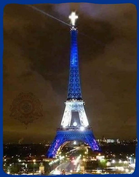 Ο πύργος του Άιφελ στην Γαλλία, φωταγωγήθηκε στα χρώματα της Ελλάδος και με τον Τίμιο Σταυρό στην κορυφή του, τιμώντας την Ελληνική επανάσταση της 28ης Οκτωβρίου 1940