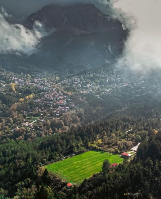 Το γήπεδο των Πραμάντων, με φόντο το ομώνυμο χωριό κάτω απο την επιβλητική κορυφή της Στρογγούλας. Τζουμέρκα! Φωτογραφία: vangelis_tsakalos Αbove View