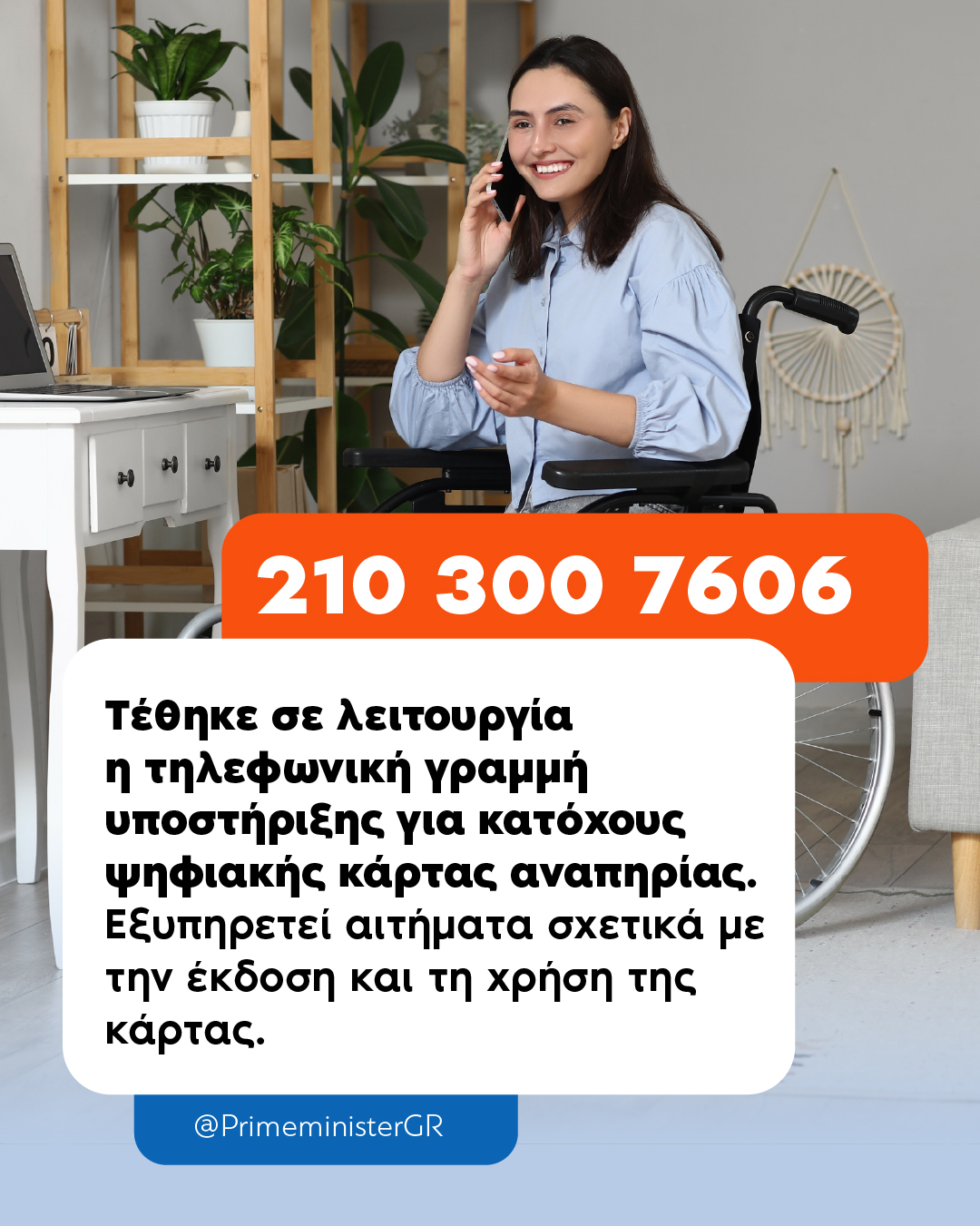 Η φροντίδα για όλους, και ιδιαίτερα για τους πιο ευάλωτους, είναι ο κοινός παρονομαστής των πολιτικών μας. Η ψηφιακή κάρτα αναπηρίας που θεσμοθετήσαμε το 2022 είναι ένα απτό βήμα προς μια πιο συμπεριληπτική κοινωνία. Επιτρέπει στα άτομα με αναπηρία να τη χρησιμοποιούν ως δικαιολογητικό αντί της πιστοποίησης αναπηρίας και με την επίδειξή της εξυπηρετούνται κατά προτεραιότητα σε διαφορές υπηρεσίες, ενώ με ένα απλό σκανάρισμα έχουν άμεση και δωρεάν πρόσβαση στους αρχαιολογικούς χώρους και τα μουσεία αρμοδιότητας του Υπουργείου Πολιτισμού. Μέχρι το τέλος του έτους, η κάρτα θα είναι διαθέσιμη και…