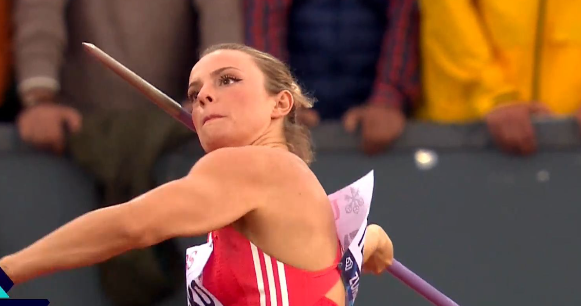 Η αθλήτρια του Γιώργου Μποτσκαριώβ έδειξε έτοιμη να κάνει πια το μεγάλο βήμα στην καριέρα της σε επίπεδο γυναικών και πέρα από τα σύνορα της Ευρώπης, στο επερχόμενο Παγκόσμιο Πρωτάθλημα του Τόκιο. Αυτό είναι το έβδομο διαμάντι που καταλήγει σε ελληνικά χέρια. Τέσσερα έχει στην κατοχή της η Κατερίνα Στεφανίδη, ένα η Νικόλ Κυριακοπούλου (το πρώτο χρονικά) και άλλο ένα ο Μίλτος Τεντόγλου. Η εξέλιξη του αγώνα Η Ελίνα μπήκε στον αγώνα με… άγριες διαθέσεις ρίχνοντας με την πρώτη προσπάθεια 64.57, πολύ κοντά στην καλύτερη φετινή επίδοσή της που είναι…