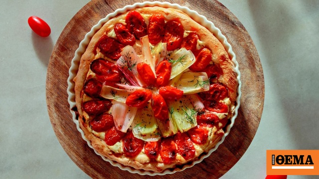 Τάρτα με πράσα, ντοματίνια και κρέμα τυριού