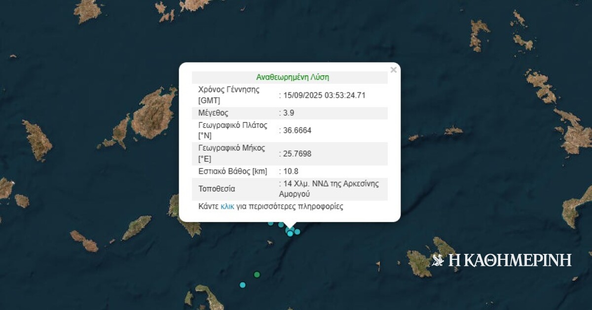 Σεισμός 3,9 Ρίχτερ στα ανοιχτά της Αμοργού