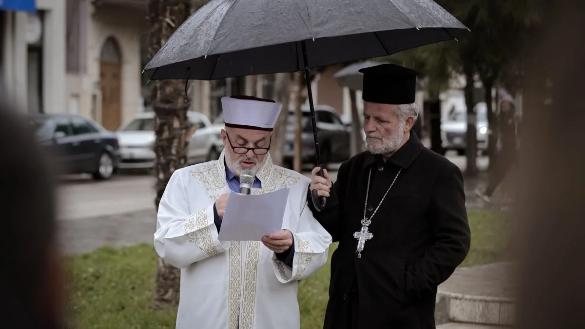 Ελμπασάν μιλά ο μουφτής της πόλης και ο Ορθόδοξος ιερέας του κρατά την ομπρέλα