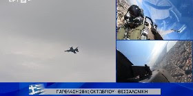 Μήνυμα για τον εορτασμό της εθνικής επετείου της 28ης Οκτωβρίου απηύθυνε από τον ασύρματο του F-16 ο επισμηναγός Γεώργιος Σωτηρίου στη στρατιωτική παρέλαση της Θεσσαλονίκης.