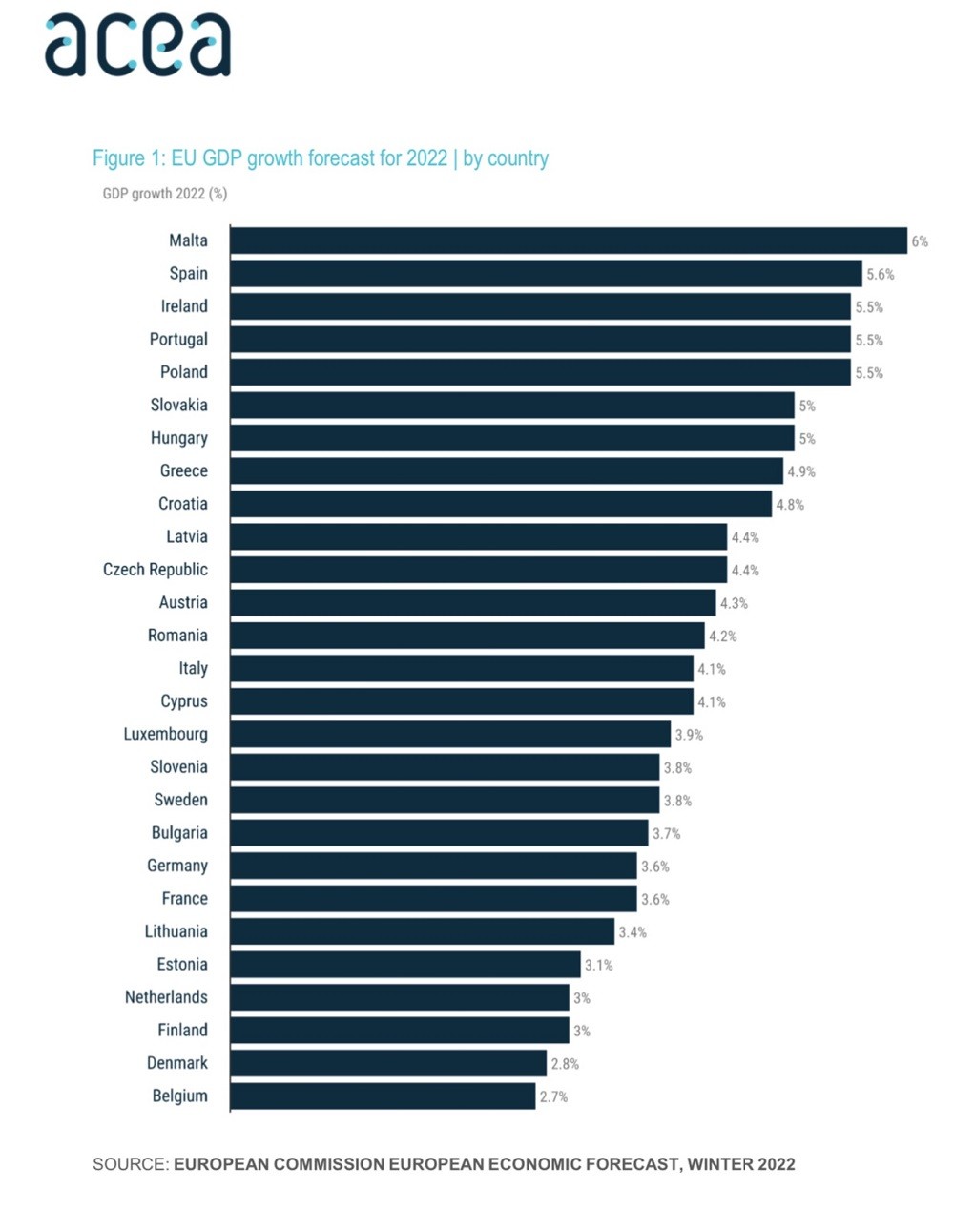 Σημαντική άνοδο κατέγραψε η ευρωπαϊκή αυτοκινητοβιομηχανία κατά την διάρκεια του 2021 με το μέσο Ακαθάριστο Εθνικό Προϊόν (ΑΕΠ) των κρατών-μελών να κυμαίνεται σε 5,3%. Σύμφωνα μάλιστα με την τελευταία ανακοίνωση της ΕΕ το αντίστοιχο ποσοστό ανόδου του ΑΕΠ των κρατών μελών για το 2022 αναμένεται να κυμανθεί σε 4% ωστόσο ο πόλεμος μεταξύ Ρωσίας και Ουκρανίας είναι πολύ πιθανό να ανατρέψει τα δεδομένα στην παγκόσμια οικονομία και εν τέλει το ΑΕΠ των κρατών-μελών να περιοριστεί μεταξύ 2,9% και 3,9% το 2022.