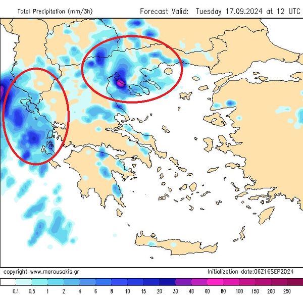 Για σήμερα Τρίτη (17/9), αναμένονται βροχές και μεμονωμένες καταιγίδες κυρίως στη Μακεδονία, τη Θεσσαλία, τις Σποράδες, την ανατολική Στερεά, την Εύβοια και το Ιόνιο. Τα φαινόμενα πιθανώς στα δυτικά το βράδυ να είναι κατά τόπους ισχυρά.